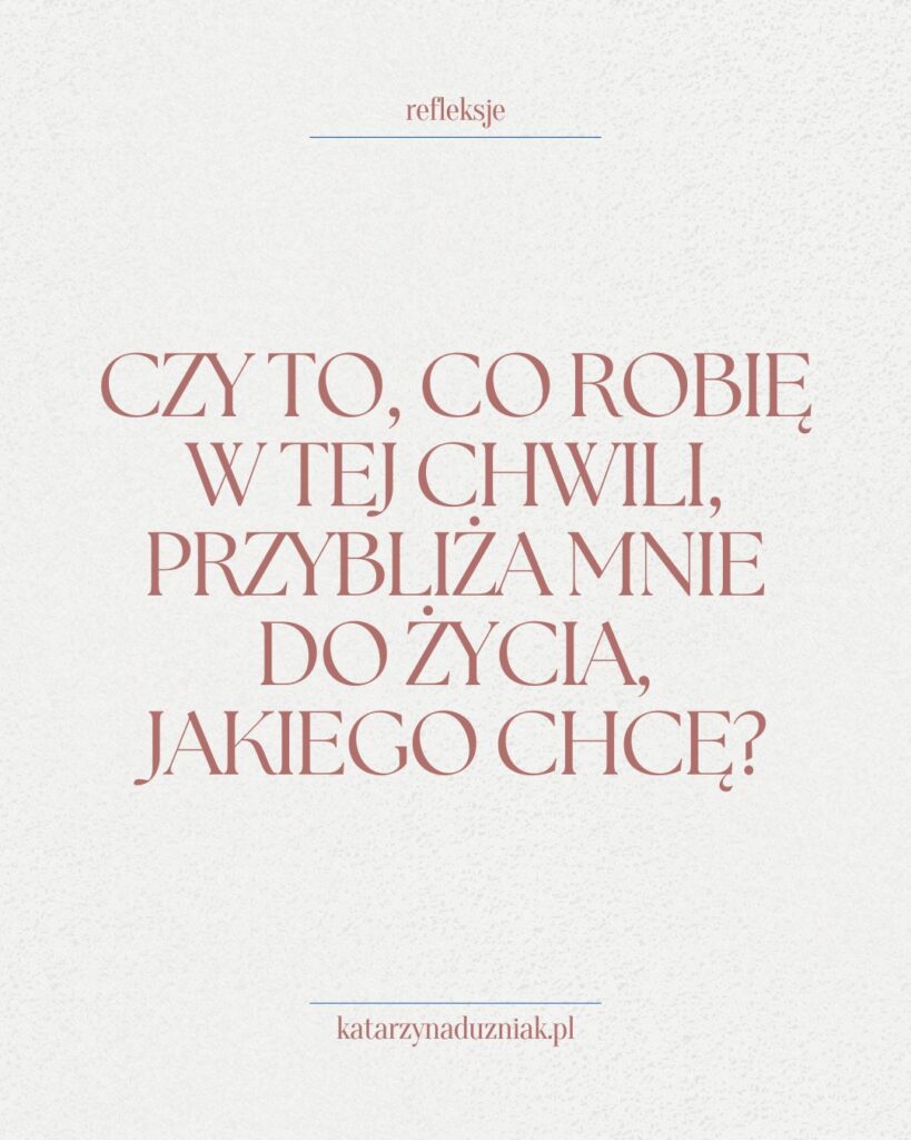 „Czy to, co robię w tej chwili, przybliża mnie do życia, jakiego chcę?”